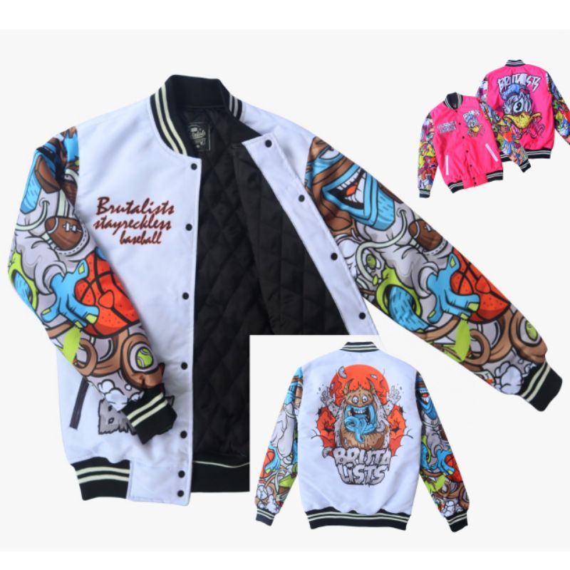 JAKET VARSITY BASEBALL BRUTALISTS DENIM JAKET UNISEX ORIGINAL PRIA WANITA
