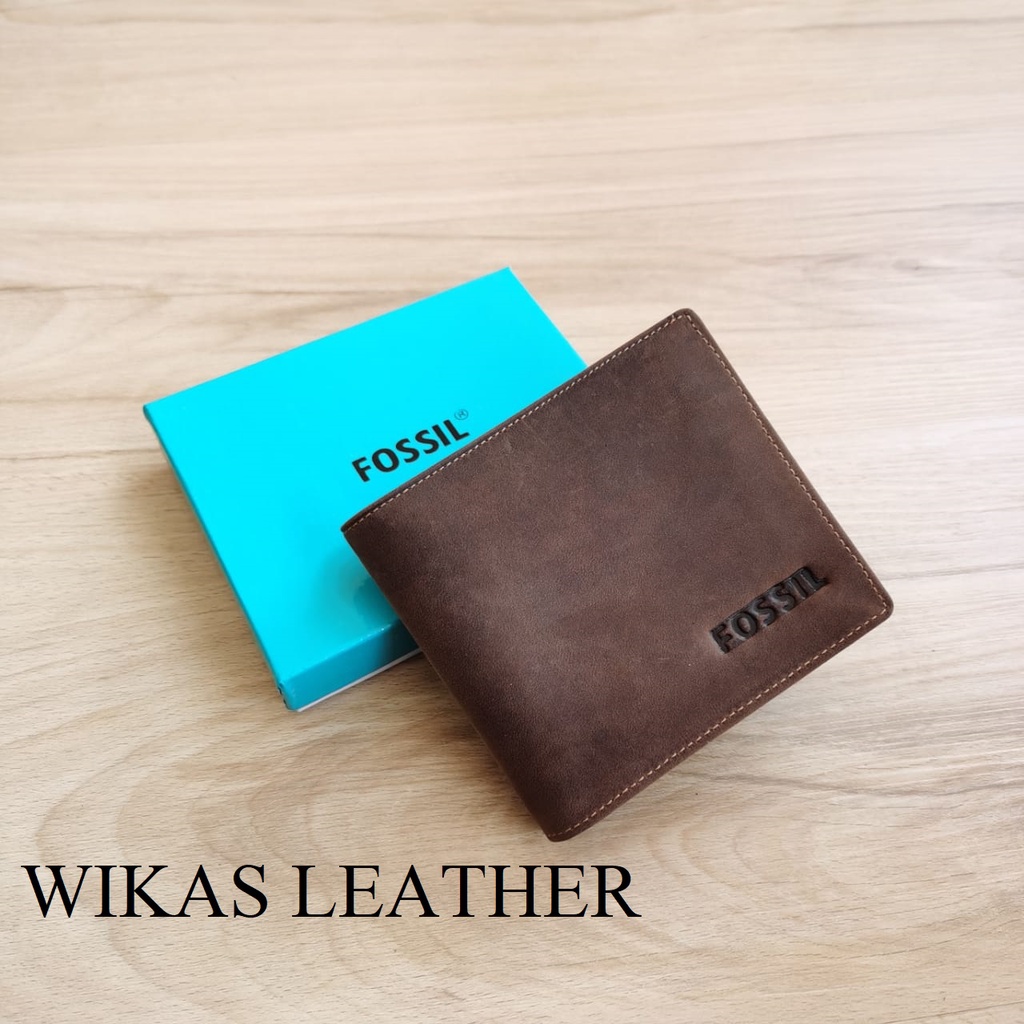 Dompet Pria Kulit Asli Model Tidur WKS-13 Tekstur Kulit Crazy Horse
